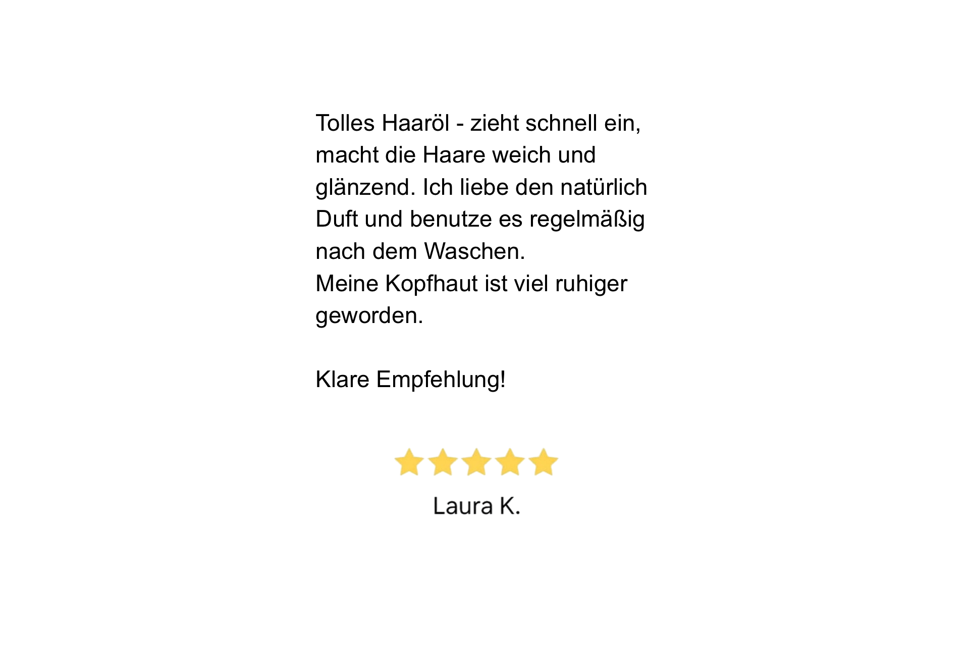 Unser luxuriöses Haaröl vereint die Kraft natürlicher Inhaltsstoffe, um dein Haar von innen heraus zu pflegen.